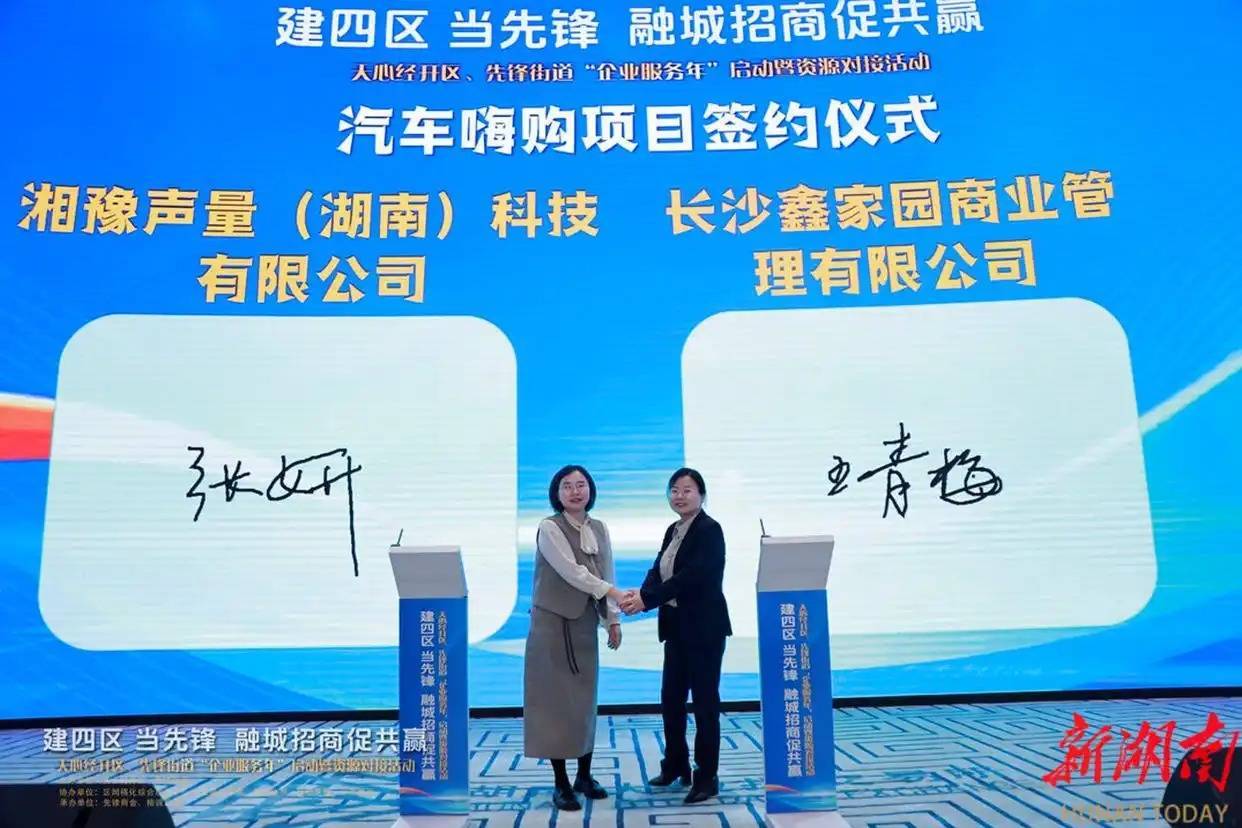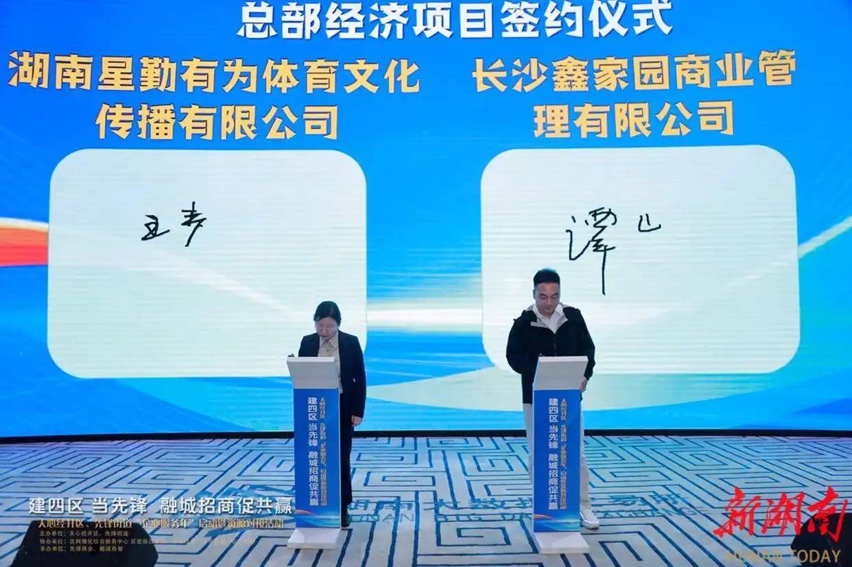 企业代表奥谱天成(湖南)信息科技有限公司、湖南中智经济技术合作有限公司相关负责人,分享企业发展经验及服务区域发展思路。现场举行了多轮签约仪式。湖南星勤体育文化传播有限公司、湘豫声量(湖南)科技有限公司与长沙鑫家园商业管理有限公司达成战略合作协议;湖南珩鑫文化传媒有限公司、湖南省中海商业广场投资有限公司完成入驻签约。